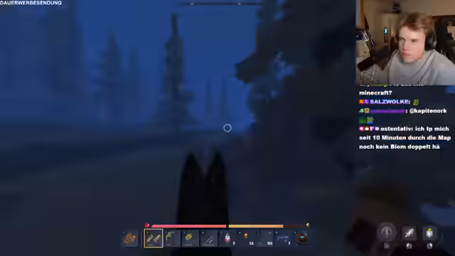 06:52:37Nach dem Verlassen eines Dungeons werden mehrere Gebiete erkundet, darunter ein Dorf, das mit Mobs gefüllt ist. Es folgen intensive Kämpfe gegen Gegner wie Eisbären und Yetis, bei denen seltene Gegenstände wie Doom Shadow Bogen und Shadow Weave Scraps gelootet werden. Der Streamer diskutiert die Schwierigkeiten und die Ausdauermechanik im Kampf, während er mit anderen Spielern interagiert, um Überlebende zu finden.