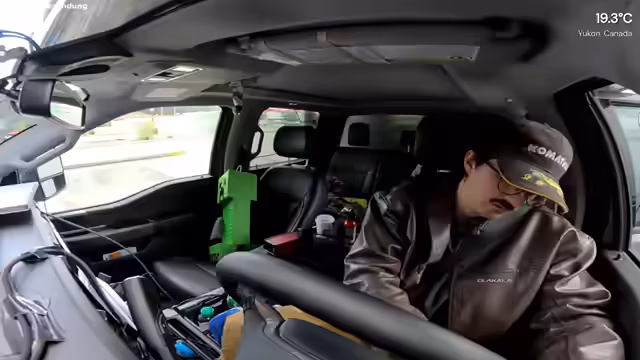 00:22:42Ein unerwartetes Problem taucht auf: die geplante Route führt durch Alaska, was ein US-Visum erfordert. Da die Streamer kein Visum haben, muss der Plan kurzfristig geändert werden. Sie beschließen zunächst nach Whitehorse zu fahren, um wichtige Vorräte einzukaufen. Das Ziel ist, sich für den Aufenthalt in der abgelegenen Stadt Dawson City vorzubereiten, die als rückständig und ohne Strom oder fließendes Wasser beschrieben wird. Während der Fahrt gibt es technische und organisatorische Herausforderungen, wie die unsichere Befestigung des Starlink und die Aufteilung der Aufgaben.