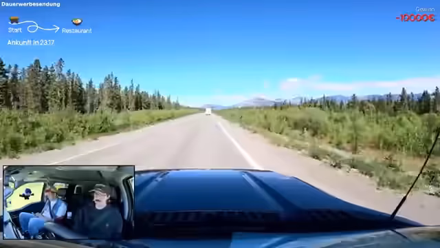 03:28:51Die Produktion von Live-Content während der langen Autofahrt stellt eine Herausforderung dar. Normalerweise würden die Streamer auf den Chat eingehen, aber das ist jetzt unmöglich. Sie beschließen, die Zeit mit Gesprächen und Musik zu überbrücken und betonen, dass es nicht die ganze Zeit Redbedarf gibt. Die Strecke auf dem Alaska Highway wird als sehr gerade beschrieben, was die Fahrt entspannt macht. Die Streamer sind begeistert von der landschaftlichen Schönheit und erwähnen die Möglichkeit, Wildtiere wie Bären zu sehen, auch wenn sie sich über die Gefahr bei einem Treffen lustig machen.