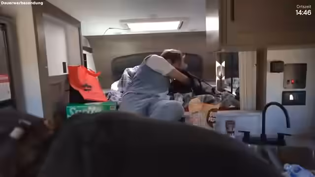 10:20:53Ein unerwartetes und unangenehmes Ereignis unterbricht die monotone Wartezeit: ein großer Käfer fliegt in das Fahrzeug. Dies führt zu einem erheblichen Chaos, da die Streamer panisch die Fenster schließen. Dabei stürzt eine Chips-Tüte um und der Innenraum wird voller Chips verstreut. Der Vorfall sorgt für kurzzeitigen Schrecken und ist ein Beispiel für die unkontrollierten Aspekte der Reise.
