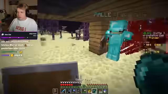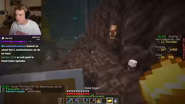 06:54:33Der Stream beginnt mit Diskussionen über Ingame-Gefühle wie das Öffnen eines Bierkastens im Sommer. Es wird über neue Drops gesprochen, wobei einer der Spieler einen Fetzer von 4-Buch erwähnt, während der andere Jay für eine gute Loot-Zuteilung lobt. Die Suche nach Elytra und Enderperlen wird fortgesetzt, wobei die Platzierung im Ranking bei Platz 9 liegt. Gelegenheiten zum Looten werden genutzt, so wird eine FV4 Schaufel gefunden und unterschrieben. Ein Silk-Clutch-Pickaxe wird ebenfalls entdeckt. Die aktuelle Platzierung verbessert sich auf Platz 8.