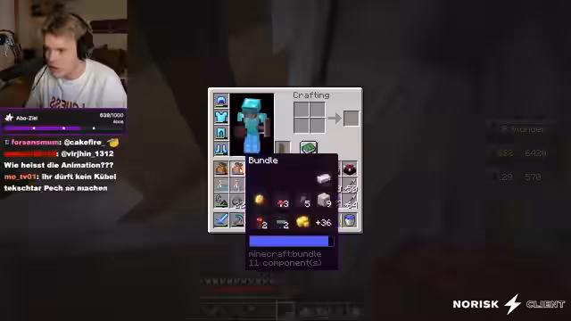 03:56:46Die Spieler beginnen mit der Beschaffung grundlegender Ressourcen für ihre Minecraft-Welt. Sie diskutieren die Herstellung von Diamantschwertern und Äxten, wobei ein Mitspieler versehentlich einen Diamant in Lava wirft. Es folgt ein Austausch über notwendige Gegenstände wie Schutztränke und Schießpulver. Ein zentraler Punkt ist die Organisation von Bundles zur effizienten Lagerung von Gegenständen, während sie sich auf die Erkundung vorbereiten und über den Kauf von Pfeilen und Bögen in einem Dorf verhandeln.