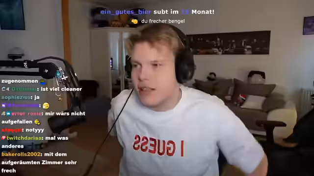 01:37:02Der Streamer zeigt sich verärgert über eine von ihm zufällig gepostete TikTok-Story von Phoebe, in der ein Sound-Ausschnitt versehentlich wiederholt wurde. Er schämt sich dafür und ruft Phoebe an, um das zu klären. Anschließend wendet er sich dem Thema Reichtum zu, nachdem er Bilder von Phoebes neuer, aufwendig eingerichteter Wohnung gesehen hat. Er äußert den Wunsch, eines Tages ebenfalls eine eigene Wohnung zu besitzen und eventuell sogar ein Gästezimmer für die Community bereitzustellen.