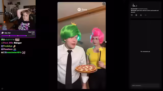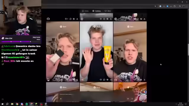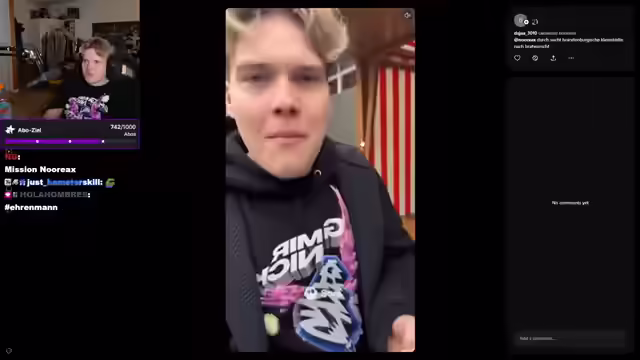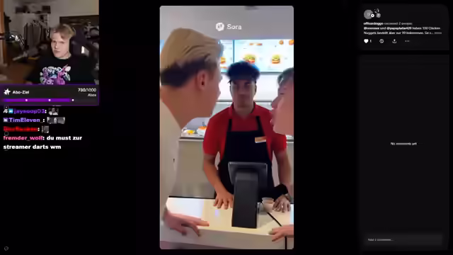 02:00:57Einem nichtsahnenden Opfer wird ein normaler Rindfleischburger als veganer Burger untergejubelt, um dessen Reaktion zu filmen. Parallel dazu wird ein Aufruf des Verfassungsschutzes bezüglich eines 19-jährigen Bloggers namens Nuri Aksaks eingeblendet, dem staatsgefährdende Kommunikation vorgeworfen wird. Es wird dazu aufgerufen, Informationen über den Blogger an die Polizei oder den Verfassungsschutz weiterzugeben. Der Streamer spielt ein Spiel, in dem er Bäume fällt und stirbt, was zu Frustration führt. Anschließend wird ein KI-generiertes Bild präsentiert, das den Streamer mit Locken zeigt, und die Frage aufgeworfen, ob er mit jemandem einen Kaffee trinken gehen würde, obwohl er mit Kevin zusammen ist.