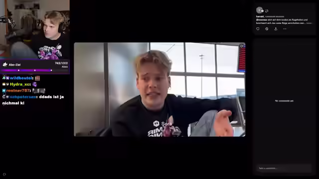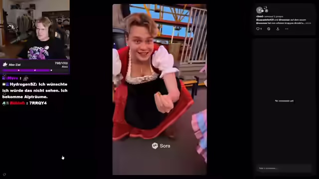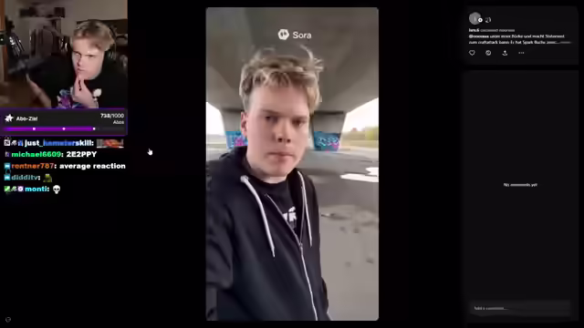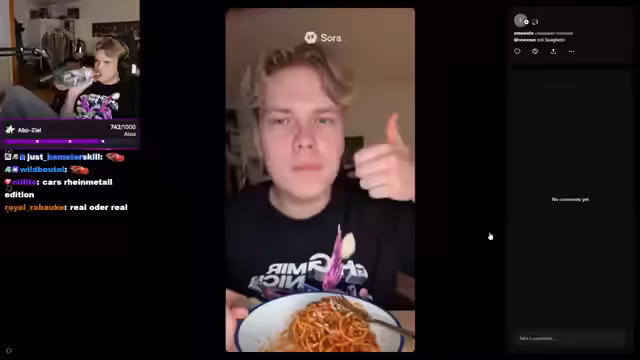 00:40:05Es wird erklärt, wie man Sora nutzen kann und wie man Codes an andere Viewer weitergibt. Es wird ein Wettbewerb gestartet: Das lustigste Video mit Sora gewinnt 50 Euro. Zuschauer werden ermutigt, kreativ zu sein und witzige Inhalte zu erstellen. Es wird angekündigt, dass das geplante Among Us-Spiel auf morgen verschoben wird, um stattdessen den Abend mit Sora-Experimenten zu verbringen. Es wird ein neuer Titel für den Stream festgelegt: "Sora AI Scheiße Müll bauen Hier bekommt ihr so ihr die Codes". Es wird über ein Video diskutiert, das gelöscht werden muss. Es wird sich über einen permanenten Bann auf einem Server aufgrund von unterirdischen Aussagen lustig gemacht. Es wird sich über die Qualität der AI-generierten Videos amüsiert und festgestellt, dass Kevin in den Videos sehr ähnlich aussieht. Es wird sich gefragt, woher die AI weiß, wie der Schrank aussieht. Es wird eine neue Regel aufgestellt: Keine Jobs in den Videos. Es wird über die gruseligen Ergebnisse der AI-Generierung gesprochen.