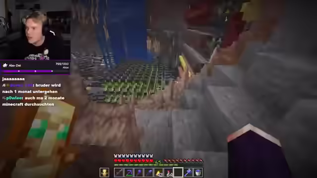 02:47:50Es wird erwähnt, dass Codes in der Familie ausgetauscht werden und jeder vier neue erhält. Der Streamer baut für Trimax auf CraftAttack eine automatische Kaktusfarm, beginnend mit einer Sandplatte und Wasser, um die Kakteen zu den Trichtern zu spülen. Danach bedankt er sich für zwei Tech-Areas und lobt die AI-Slop-Kreationen einiger Zuschauer. Er fordert die Zuschauer auf, sein Profil zu besuchen, um die besten zu sehen. Anschließend trinkt er demonstrativ die Ostsee leer und äußert sich erschöpft und durchgeschwitzt. Er vermutet ein Mikrofon in seiner Kleidung und reißt eine Naht auf, um etwas darin zu finden. Er zeigt sein Lieblings-Lego-Teil, einen grauen Stein, den er als Lego-Penis bezeichnet und bedankt sich für 150 Follower auf Sora. Er erwähnt, dass er noch nichts gegessen hat und fragt nach Essen.