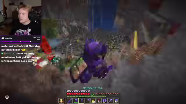 03:21:59Der Streamer imitiert Big Mom und fordert Kuchen. Er sagt, sein Kopf könne das nicht verarbeiten und denkt, es sei echt. Er kündigt an, dem Finanzamt seine Meinung zu sagen. Er wird im Minecraft Championship Zweiter. Er filtert Badewasser mit Erdbeerduft. Er hat Hunger und sagt, er habe zu viel Zeit mit Stegi verbracht. Er imitiert einen Händler im Dorf. Er sagt, er sei nicht Nureax und die anderen seien KI-generiert. Er hat sich für blaue Farbe entschieden, weil sie ruhig wirkt und gut zu seinen Haaren passt. Er ist am Po in Norditalien und sucht Flussmonster. Er spielt im Zoo den Bären und isst Honig. Er weist Unterstellungen zurück. Er sitzt am Steuer auf dem Führerschein und setzt eine Perücke auf. Er trinkt Monster Ultra-Wide und ist Platz 1 auf der weltweiten Fahndungsliste. Er ist beim Friseur und hat sich eine Penny-Kassiererin Frisur machen lassen. Er bedankt sich bei OpenAI für die Bots. Er fährt Auto und klaut Ladys Schinken.