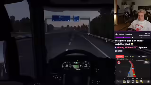 04:37:03Es wird festgestellt, dass die Zuschauer 'Vollgeeks' sind und man selbst ein 'Opfer' ist. Es wird Tobi für VIP erwähnt und sich über Hunger beklagt. Es werden TikToks über Soul-Musik-Hater thematisiert und die norwegische Grenze angestrebt. Tunnel werden als gruselig empfunden und ein Geständnis als 'Swifty' (Taylor Swift Fan) abgelegt. Es wird nach chilligen Kontrollen im Land gefragt und die Aussage getroffen, dass man ein 'Zwift' sei und sich in den Schlaf weine. Die Meinung zu Shootern wird erfragt. Es wird der Rat gegeben, mit dem Freund Schluss zu machen, wenn man dessen Meinung nicht teilt. Eine zerschrubbte Felge wird bemerkt und sich über einen Gewinn von 91k gefreut. Es wird überlegt, ob man mit Phoebe etwas unternehmen soll, aber die Switch ist nicht aufgebaut und müsste aktualisiert werden. Die Idee, mit Lenkrad zu spielen, wird als gefährlich verworfen. Es wird versucht, den Ort Trelleborg rückwärts zu nennen und ein Gag darüber gemacht. Es wird festgestellt, dass man ein 'krasser Ant' geworden ist und sich über 'Liga' aufgeregt.
