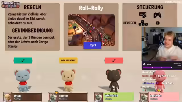 03:04:37Der Stream startet 'Forgotten Playlands' und stellt seine Freunde vor, die in das Spiel einsteigen. Das Team erkundet die Spieloptionen und wählt verschiedene Minispiele aus, wie zum Beispiel Starshooter und Hühnerfang. Während des Spiels gibt es technische Schwierigkeiten, insbesondere mit der Tastatur des Streamers, was zu humorvollen Verlusten führt. Das Ziel ist es, 'die Firma komplett an die Wand zu fahren' und die verschiedenen Modi und Herausforderungen des Spiels auszuprobieren.