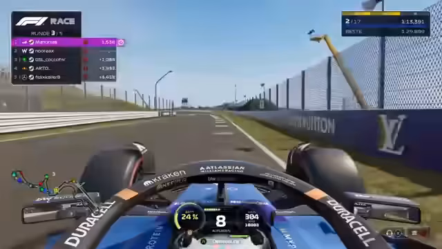 01:49:06Der Stream beginnt mit der Vorbereitung auf ein Formel-1-Rennen, wobei der Streamer die Teilnehmeranzahl in der Lobby prüft und die Wartezeit vor dem Start erwähnt. Nachdem er das Fahrzeug für das Rennen ausgewählt und die Konfiguration geladen hat, startet die Qualifikation. Der Streamer ist optimistisch, eine gute Platzierung zu erreichen, und erwähnt, dass es eine lockere Runde werden könnte. Er betont, dass er mit seinem Setup zufrieden ist, welches für die Strecke Japan konfiguriert ist.