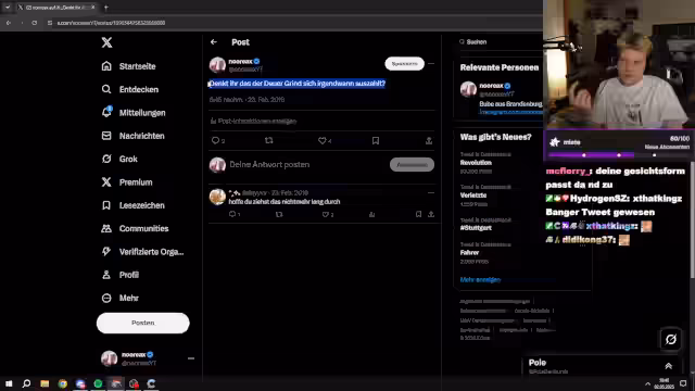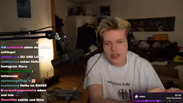 00:24:53Es wird ein tief Einblick in die persönlichen Sorgen und Zukunftspläne gegeben. Der Streamer gibt an, eine Mietbewerbung ausgefüllt zu haben, bei der er sein Einkommen gelogen hat, da die Miete extrem hoch ist. Dies erzeugt immensen Druck, monatlich streamen zu müssen, um die Wohnung zu bezahlen. Zukunftsplane beinziehen einen möglichen Umzug nach Köln mit einem Freund, auch wenn die Finanzierung diesbezüglich noch ein Problem darstellt.