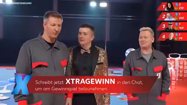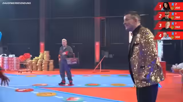 04:41:55Nachdem das Spiel zu einem erfolgreichen Ende gebracht wurde, werden die Gewinner bekannt gegeben. Jens erhält einen Preis, und eine Verlosung startet für das Publikum, bei der ein Nintendo Switch gewonnen werden kann. Kurz darauf beginnt ein neues Spiel, ein Dart-Wettbewerb, bei dem jeder Spieler eine eigene Distanz zum Wurfziel wählen muss, was die Spannung und den Spielspaß weiter erhöht.