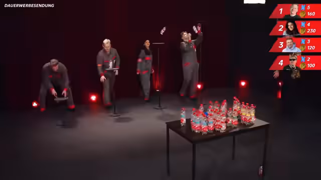 05:48:21Nach dem Hauptspiel folgt als letzte Herausforderung das Minispiel 'Bottle Flip'. Die Teilnehmer müssen versuchen, eine Flasche auf einen Tisch zu werfen, was trotz seiner simplen Ansprache eine große Portion Geschicklichkeit und Nervenstärke erfordert. Nach mehreren Runden, in denen einige Spieler scheitern, geht einer als Gewinner hervor. Im Anschluss folgt die feierliche Siegerehrung, bei der der finale Gewinner gekürt und die großen Preise wie das MacBook Pro an die Gewinner-Community übergeben werden, was den fulminanten Show- beendet.