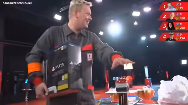 05:24:16Nach dem erfolgreichen Abschluss des Pfeilwettbewerbs wird der erste große Preis, eine Sony-Kamera, verlost. Ein Zuschauer aus Königsluttern geht als Sieger hervor. Anschließend folgt die Verlosung einer PlayStation 5, für die die Teilnehmer im Chat ihrer Community aufrufen, um die Teilnahme zu maximieren. Nach den Preisverlosungen wechselt das Showformat von Präzisionsspielen hin zu einem interaktiven Würfelspiel, bei dem die Spieler um Boni und strategische Vorteile ringen und das Spiel dynamischer und teamorientierter wird.