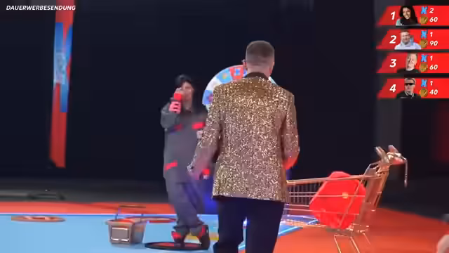 00:14:44Der Stream zur XXL-Spiele-Show beginnt, bei der主播 Aaron Troschke, alias Knossi, Gäste wie Max Schradin, Rosemondy Pilcher und Marcel begrüßt. Das Motto ist die Kaufland-Card Extra, bei der Kunden pro Euro einen Treuepunkt sammeln können. Neben Spielern wie Schradin und dem Finalisten von Miss Germany, Rosemondy, ist auch derStreamer Jens Knossi alias Knossala anwesend. Das große Spielfeld, bestehend aus einem Spielfeld, einem Korb und zwei Würfeln, wurde bereits aufgebaut.