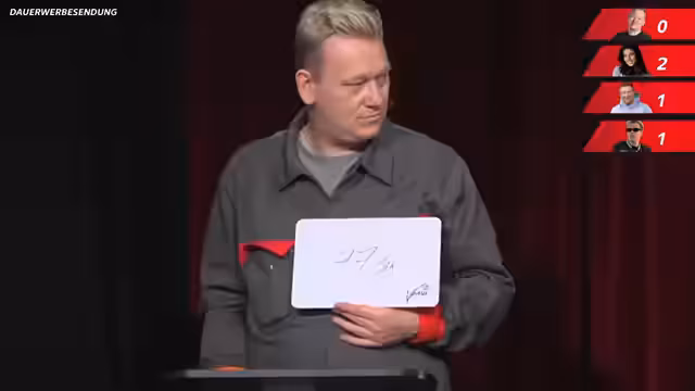 01:52:14Ein Schätzspiel entbrennt, bei dem Teilnehmer Stückzahlen erraten müssen. Es kommt zu Unstimmigkeiten, weil eine Teilnehmerin nicht 'Stück' schreibt, obwohl mehrfach darauf hingewiesen wurde. Der Moderator entscheidet letztlich, dass ihre trotzdem akzeptiert wird. Anschließend folgt eine Runde, bei der die Teilnehmer Kiwis für eine Meterstrecke schätzen müssen. Der Fokus liegt auf der korrekten Einheit 'Kiwis' und nicht auf Meter, was wiederum für Verwirrung sorgt.
