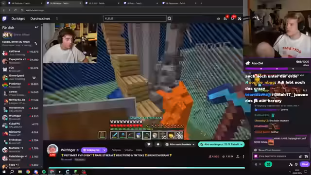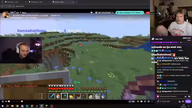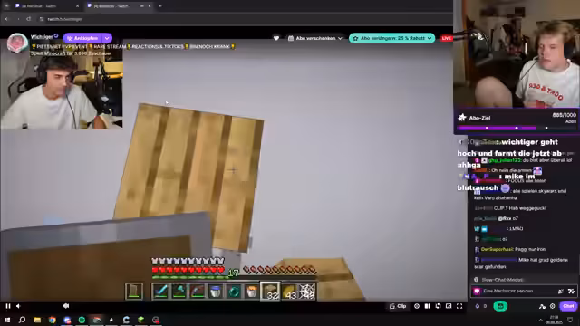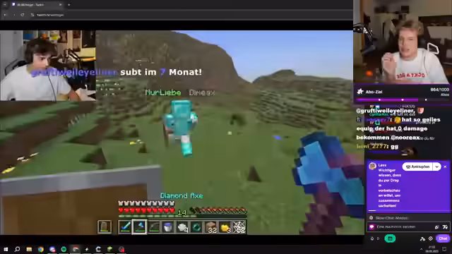 00:00:01Der Stream startet mit technischen Schwierigkeiten, darunter Probleme mit dem Ingame-Sound und der Stream-Qualität, die auf 127p reduziert ist. Es gibt anfängliche Orientierungsprobleme bei der Suche nacheinander im Spiel, begleitet von Kommentaren zur schlechten Stream-Qualität. Trotzdem wird der Fokus auf das Finden von Ressourcen und den Aufbau von Ausrüstung gelegt, um sich für PvP-Kämpfe vorzubereiten. Die Spieler äußern Unzufriedenheit mit ihrer aktuellen Farm-Situation und dem Mangel an Essen, betonen aber die Notwendigkeit, mental stark zu bleiben. Es wird überlegt, wie andere Teams mit dem Essen umgehen und Strategien zur Nahrungssuche werden diskutiert. Trotz der Herausforderungen werden Diamanten gefunden und die Ausrüstung verbessert, wobei der Fokus auf den Erwerb von Full-Dia-Sets und scharfen Schwertern liegt.