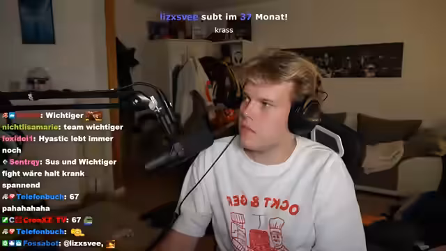 02:33:10Zunächst wird eine Anekdote über KSFM und die stündlichen Grüße von Kapital Bra an seine „Bratans und Bratinas“ geteilt, was für einige Gesprächsteilnehmer immer noch ungewohnt ist. Danach wird kurz über Casino-Streams und den Song „Fick31er“ von Kapital Bra gesprochen, der als herausragend bezeichnet wird. Es folgt eine humorvolle Beschreibung einer chaotischen Spielsituation, in der ein Spieler von mehreren Gegnern eingekreist und attackiert wird. Die Hilflosigkeit des Spielers wird betont, während die anderen Teilnehmer das Geschehen amüsiert kommentieren. Es wird spekuliert, dass der Spieler keine Chance hatte und von den Gegnern regelrecht „genascht“ wird. Die anschließende Analyse der Situation ergibt, dass der Spieler zwar gute Ausrüstung hatte, sein Gegner jedoch noch besser ausgestattet war, was die Ausgangslage zusätzlich erschwerte. Es wird kurz die Frage aufgeworfen, wer den Spieler im Hintergrund unterstützt, wobei der Name Felika fällt, die als treue Unterstützerin im Craft-Effekt bekannt ist. Die Diskussion schließt mit der Feststellung, dass der Gegner nun überlegene Ausrüstung besitzt, was die Situation für den bedrängten Spieler noch schwieriger macht.