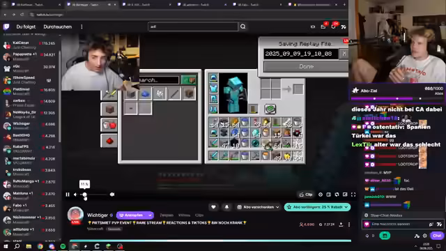 01:50:22Minecraft wird als eines der intensivsten Spiele überhaupt bezeichnet, vergleichbar mit den ersten Finalrunden in Fortnite oder PUBG. Die Nervosität und das Zittern, die man dabei erlebt, sind unvergleichlich. Der Unterschied zu Shootern liegt darin, dass man sich in Minecraft weniger wohl fühlt und der Entscheidungsprozess, ob man zurückschlägt oder flieht, sehr komplex ist. Das Sterben durch unglückliche Umstände wird thematisiert, insbesondere wenn Gegner Deathstrider 3 besitzen und man im Wasser landet. Die Geschwindigkeit von Wichtiger wird bewundert und es wird sich gefragt, ob sein Spiel unfair war, als er einen EFT-Streamer gepusht hat. Es wird festgestellt, dass es nur wenige Teams gibt, die das Spiel wirklich beherrschen. Fabo hat Full-Plot 3, was als krank bezeichnet wird. Es wird vermutet, dass es im Nether eine Festung gab. Nick Ullrich hat eine Einladung in eine Gruppe geschickt, die als schlechteste WhatsApp aller Zeiten bezeichnet wird. Es wird über das neue Flair gesprochen, das man sich gestern bei Felix angesehen hat und das viele denkwürdige Zitate enthielt. Es wird ein Vorfall mit Chiargo erwähnt, dem man im Auge geklatscht hat. Die reflektierte Art, wie über den Typen geredet wird, wird positiv hervorgehoben.