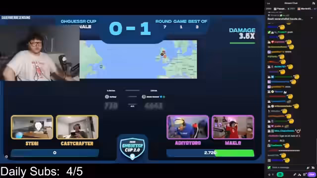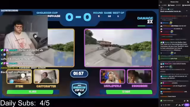 04:22:08Im Stream wird eine knappe GeoGuessr-Runde analysiert, in der Team Pink fast keine Pins auf der Karte hatte. Streamer Heiko macht einen exzellenten Call zur serbischen Grenze, während Stegi und Meilo knapp daneben liegen und Punkte verlieren. Das Team diskutiert die Runde und vergleicht die geografischen Merkmale, wobei Heikos Instacall als entscheidend für den Sieg bewertet wird. Die Kommunikation mit dem Stream Dustin unterbricht zeitweise, was zu technischen Verwirrungen führt und den Fokus des Spiels stört.