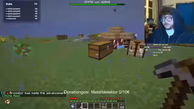 00:02:44Der Stream beginnt mit dem ersten Tag eines七天 langen Minecraft Elements-Projekts. Der Streamer spielt auf dem Norse Client und stellt die ersten Aufgaben vor. Die Hauptaufgabe für die Gruppe besteht darin, Basalt abzubauen, um das erste gemeinsame Ziel im Hub zu erreichen. Es gibt drei verschiedene Inseln: Sky-Insel, Ocean-Insel und Stone-Insel. Die Progression erfolgt durch das Lösen von Quests, und das Team arbeitet daran, die Basalt-Ressource zu farmen und das Gruppenziel zu vollmachen.