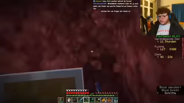 05:42:58Während der Suche nach Festungen im End ereignen sich mehrere Rückschläge. Ein Teammitglied stirbt und verliert seine Ausrüstung, was zu erheblichen Problemen führt. Gleichzeitig stellt sich heraus, dass es schwierig ist, Holz zu finden, um weiterbauen zu können. Die Stimmung ist gedrückt, da das Team bereits seit mehreren Stunden ununterbrochen sucht und bisher nur begrenzte Erfolge erzielt hat.