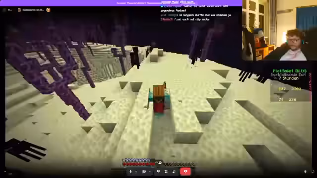 05:41:25Nachdem im Nether nach Schackern gesucht wurde, konzentriert sich der Stream nun auf die Suche nach Festungen im End. Dabei wird diskutiert, dass es schwierig ist, zwei Pandas zu finden und dass ein Snitzer für das Preaten von Tieren benötigt wird. Die Teammitglieder überlegen, in welche Richtung sie suchen sollen, und planen, sich auf die Suche nach Städten zu konzentrieren, die zum Erreichen von Advancements benötigt werden.