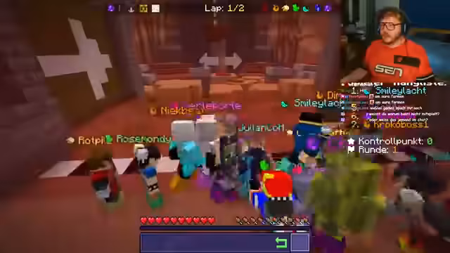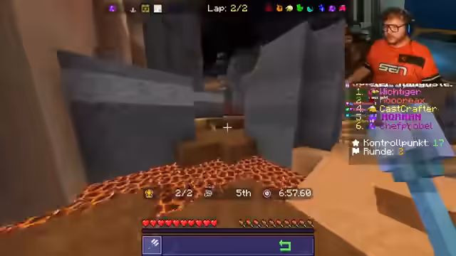 01:50:12Das Team analysiert ein Video, um die beste Strategie für 'Trailblazers' zu entwickeln, ein Spiel, bei dem man einen Kurs mit Speedboosts absolvieren muss. Es wird diskutiert, ob Springen während des Speedboosts besser ist als normales Rennen. Es wird vermutet, dass Gebüsche die Spieler verlangsamen. Später im Spiel erhält man einen Trident oder Elytra, um zu fliegen. Der Streamer gibt Anweisungen, wie man die Elytra und den Doppeljump am besten einsetzt. Es wird versucht, den Kurs so schnell wie möglich zu absolvieren. Es wird diskutiert, wie man den Boost am besten nutzt und ob man springen sollte oder nicht. Kuba wird angewiesen, den Trident zu aktivieren. Der Streamer hat Schwierigkeiten mit der Steuerung und verliert die Kontrolle. Es wird versucht, die Runde so schnell wie möglich zu beenden. Der Streamer ist frustriert, weil etwas mit seinem Cape nicht stimmt und er alles verkackt hat.