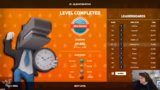 00:27:51Nachdem alle Teilnehmer im dritten Level, das als erster Wettkampfpunkt gilt, angekommen sind, gibt der Streamer den Start für 10 Minuten Zeit bekannt. Die Teilnehmer sollen hier die schnellste Zeit erzielen. Es zeigt sich schnell, dass es erhebliches Optimierungspotenzial gibt und einige Teilnehmer, wie Freddy und Edo, sehr viel schneller sind als andere. Nach Ablauf der Zeit werden die offiziellen Ergebnisse bekannt gegeben: Freddy gewinnt mit 5,101 Sekunden, gefolgt von Edo mit 5,165 Sekunden und Dalu mit einer Zeit, die er trotz kürzerer Spielzeit erreichte. Die Punkteverteilung beginnt.
