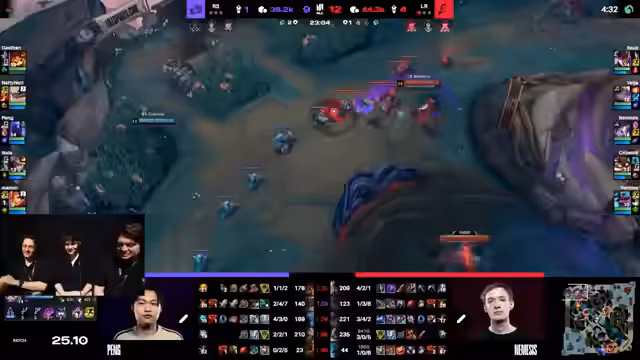 02:11:29Nach der ersten Niederlage wird über die Drafts für das nächste Spiel gesprochen. Entfernt man Sion und Ari aus dem Pool, fehlt den 'Ratten' Schaden. Ein Draft mit JimmyCollector ist als 'ineffizient' bezeichnet, da er viele Items benötigt, um relevant zu werden. Nemesis wird für seine Leistung gelobt, er spielt Ahri 'krass' und kauft sich stark auf. Es wird eine Diskussion über die Performance von Nemesis angestoßen, ob er die gleiche Leistung auch unter Druck zeigen kann. Der Fokus liegt auf den strategischen Entscheidungen für das nächste Spiel.