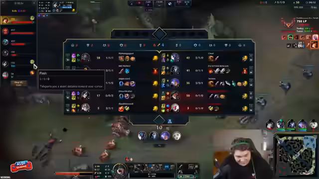 04:49:24Der Streamer ist im Ranked-Modus aktiv und äußert seine Frustration über das Spielgeschehen. Er beschreibt, wie er durch unvorsichtige Entscheidungen wichtige Minions und darauffolglich Kills verliert, was zu einem Rückstand in der Lane führt. Ein besonders frustrierendes Missverständnis führt dazu, dass er im hinteren Bereich überrasch wird und stirbt, was er als entscheidenden Fehler ansieht, der das Spiel möglicherweise kosten könnte. Er kritisiert seine eigene Hektik und vergleicht sich selbst mit jemandem, der nicht aufpasst und sich dann wundert, wenn er erwischt wird.