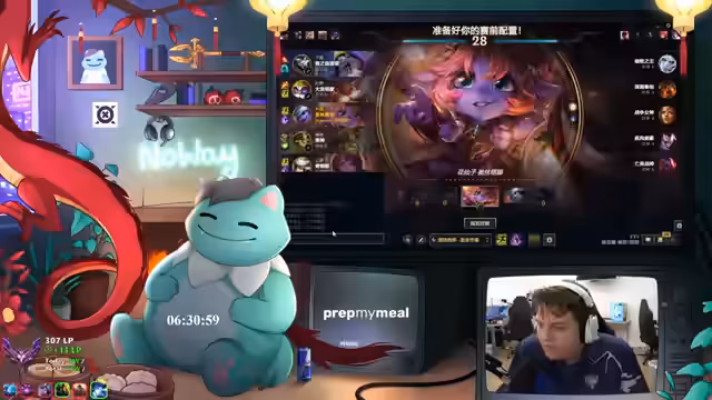 06:50:28Das Team erwägt einen Level-1 Cheese Move, aber befürchtet, dass dies stark gegen Chimit wäre, da dieser sich nicht wehren kann. Nachdem der gegnerische Jungler gespottet wurde, beschließt der Streamer, zum Red Buff zu gehen, um Rage zu eliminieren. Er bemerkt auch, dass sein PC nass geworden ist, was ihn beunruhigt. Das Team holt Deep Vision und Jace wird als starker Champion mit viel Roam-Potenzial angesehen. Die Gegner haben eine hohe Winrate auf der Topline, was den Streamer verunsichert.
