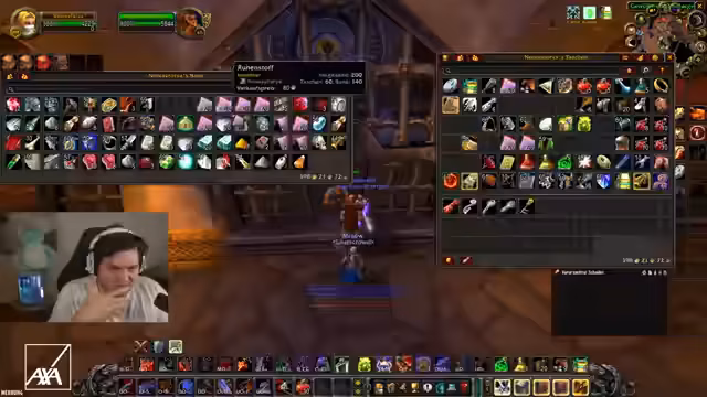 10:11:00Freddy berichtet über den aktuellen Stand seiner Ausrüstung. Sein Inventar ist bereits gut gefüllt, fehlende Items wie Schultern können nur schwer getauscht werden. Das Fehlen eines Gruppen für die UBRS-Instanz wird beklagt, da niemand zehn Personen für diesen Dungeon stellen kann. Der Plan für einen 'Moltenkorps ohne World Buffs' Raid wird angesprochen und als möglicher Scherz seitens der Zuschauer abgetan. Freddy plant, an seinem letzten Vorbereitungstag die Berufe zu maximieren und überlässt das Verzaubern seiner Ausrüstung einem späteren Zeitpunkt. Die Sammlung von Rohstoffen wird diskutiert, wobei ungebrauchbare oder überflüssige Items zur Verschickung freigegeben werden.