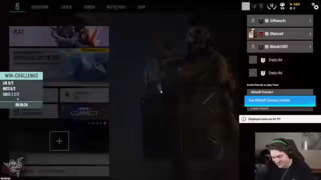05:48:07Nach mehreren Runden Overwatch beschließt das Team, das Spiel zu wechseln. Sie planen, Rainbow Six Siege zu spielen, stoßen aber auf technische Schwierigkeiten. Es kommt zu Verzögerungen bei der Einladung in das Spiel, da einige Teilnehmer Probleme mit Ubisoft Connect und Steam haben. Währenddessen unterhalten sich die Streamer über vergangene Spiele und ihre Community, was zu humorvollen Anekdoten führt. Die Stimmung ist locker, während sie auf den Start des neuen Spiels warten.