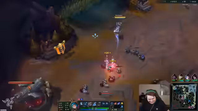 10:13:52Während des neuen Spiels werden humorvolle und teils absurte Anekdoten geteilt. Die Rede ist von einem 'Tampench-OTP', einem Master-Spieler, der aus dem Fenster gefallen ist und trotzdem ein Pro-Team coacht. Diese Story dient als amüsantes Beispiel für die skurrile Welt der Gamer. Der Fokus liegt weiterhin auf der Performance, aber in einem lockereren, selbstironischen Ton, der das Gaming-Erlebnis als unterhaltsam, aber auch anstrengend darstellt.