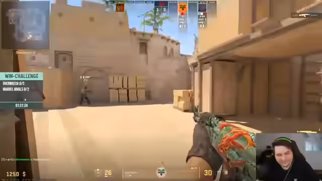 01:46:03Der Übergang zu CS:GO wird eingeleitet, wobei PUBG aus der Liste der Zusatzspiele entfernt wird. Es werden die Knife-Skins der Spieler bewundert und eine Charity-Aktion ins Leben gerufen, bei der pro Kill im Spiel 2 Euro gespendet werden. Die erste CS:GO-Runde beginnt mit taktischen Anweisungen und dem Einsatz von Blendgranaten. Es wird über die Kosten der Charity-Aktion gewitzelt und über die Skins der Waffen diskutiert. Nachfolgende Runden sind geprägt von taktischen Manövern, Teamwork und dem Austausch von Informationen über Gegnerpositionen. Es werden Headshots erzielt, Bomben entschärft und über den Wert von Skins gefachsimpelt. Die Spieler loben sich gegenseitig für ihre Leistungen und spenden für jeden Kill. Es wird überlegt, Marvel Rivals später alleine zu spielen und die nächste CS-Runde zu starten.