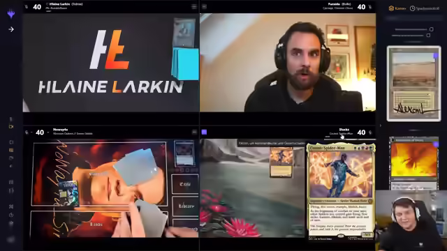 02:49:12Es wird sich nach dem Spelltable-Link erkundigt. Es wird darauf hingewiesen, den Link nicht zu zeigen. Es wird vorgeschlagen, mit F11 den Vollbildmodus zu aktivieren. Es wird sich gefragt, ob die Karten gut zu sehen sind. Es wird über das Licht diskutiert und überlegt, wie man es besser ausleuchten könnte. Es wird ein Stream together ohne zusammengelegten Chat angeboten. Es wird bei den Herrenkommandiert Leuten angeklopft. Es wird mit den Einstellungen gefieselt. Es wird sich nach der geilen Matte von Furaido erkundigt. Es wird erwähnt, dass der Streamer eine Matte aus dem ersten Fanart hat, was aber als selbstverliebt empfunden wird. Es wird erklärt, dass das Fanart zu groß war, um es nicht auf eine Matte zu drucken. Es wird erklärt, dass das Grundprinzip bei Commander ist, dass jeder 100 Karten hat und man versucht, in einem 1 gegen 1 gegen 1 gegen 1 Format zu gewinnen. Es wird betont, dass es sich um ein sehr niedriges Bracket handelt. Der Streamer spielt ein reines Spider-Man-Set mit nur zwei Non-Spider-Man-Karten. Es wird der Chat aktiviert. Es wird vorgeschlagen, Taxi-Baxis zu nutzen, falls Mechaniken und Misplays auftreten. Die Mitspieler stellen sich und ihre Decks vor. Lachs spielt den Cosmic Spider-Man Five Color, der andere Spinnen bufft. Es wird betont, dass es sich um eine beginnerfreundliche Runde handelt. Es wird erklärt, dass Commander ein Vierspieler-Format ist, wo man jede Karte nur einmal im Deck haben darf. Bolle von Herumkommandiert spielt ein Rakdos-Discard-Deck mit Carnage. Larkin spielt Miss Bumble Flower, da er keine Spider-Man-Karten hat. Frederik spielt Norman Osborn oder den grünen Goblin und wird viel mit Mayhem und aus dem Friedhof machen. Es wird vorgeschlagen, die Deckliste in das Tool reinzupacken. Es wird die erste Hand gezeigt und gefragt, ob man sie halten soll. Es wird erwähnt, dass Tobi hart mit Freddy's Kartenpool gekocht hat. Es wird festgestellt, dass zwei Länder wenig sind. Die Mitspieler sind zu laut und werden runtergedreht.