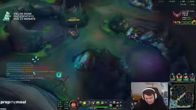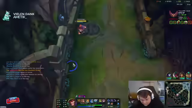 02:00:59Die allgemeine Instabilität in der Welt wird angesprochen. Es wird erwähnt, dass die Bundeswehr im Notfall deutsche Staatsbürger evakuiert. Ein früher Kill wird erzielt, der den Gegner stark benachteiligt. Gegen einen Darius wurde bereits gestern mit Cassio gespielt. Es wird vor einer gefährlichen Minion-Wave gewarnt und eine Platte gelöst. Ein Reset wird durchgeführt, um schnell wieder nach oben zu kommen. Es wird die Frage aufgeworfen, wohin die Beam gehen und auf die Turrets gepusht. Man freut sich über die Anwesenheit eines Zuschauers, der den ganzen Tag gewartet hat. Ein Win wird dringend benötigt. Permanente Pings werden als wenig hilfreich empfunden. Der Kumext-Einsatz wird erklärt. Der Titanic Highlord-Paylor kann sich nicht gegen den Schaden wehren, solange niemand hilft. Es wird festgestellt, dass das Team die erzeugte Pressure nicht nutzt, obwohl fast der Tier 2 oben erreicht wurde. Es wird die Frage aufgeworfen, warum der Chat geteimautet ist. Die Pressure auf der Top-Lane sollte das Spiel eigentlich schon gewonnen haben, aber das Team spielt nicht gut genug. Die Gegner müssen mehrfach zu viert oben sein, um die Zerstörung der Türme zu verhindern. Es wird überlegt, auf Rubber Shadowflame zu gehen, um mehr Burst zu haben. Es wird festgestellt, dass die Gegner mit jedem Champion outrangen, was den eigenen Nutzen im Spiel verringert.
