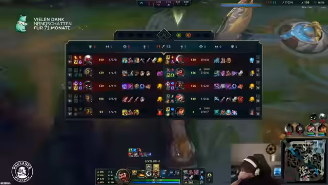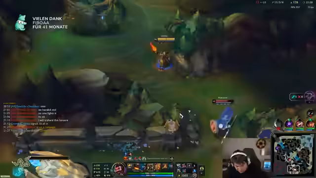 03:12:57Der Streamer befindet sich in einem High-Elo-Rank-Game und arbeitet eng mit seinem Duo-Partner, genannt 'GroKo', zusammen. Das Gameplay erfordert koordinierte Aktionen, wie das kontrollierte Gruppien und das Ziel, den Nashor zu nehmen. Er ist beeindruckt von der Spielstärke des Gegners, einen Master-Yi, und betont die Notwendigkeit von guter Kommunikation und Vision im Spiel. Trotz des Erfolgs bei der Nashor-Jagd fühlt sich der Streamer durch wiederholte, 'harte' Situationen auf der 'Weakside' demotiviert und verliert virtuelle Punkte, was seine emotionale Belastung im Spiel widerspiegelt.