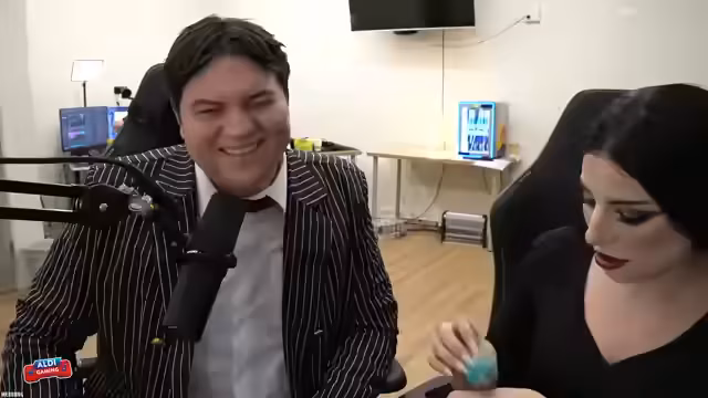 00:34:54Nach einem gespielten Game präsentiert der Streamer ein Kostüm, das an die Addams Family angelehnt ist. Er erklärt ursprünglich wäre Jan als Onkel Fester vorgesehen gewesen, was aufgrund dessen Abreise nicht realisiert werden konnte. Im weiteren Verlauf tauchen chinesische Begriffe wie 'Zaffa' (Gewinnen) und 'Shibai' (Verlieren) auf, die der Streamer in den Kontext von Giveaways stellt und mit den Chat-Interaktionen verbindet.