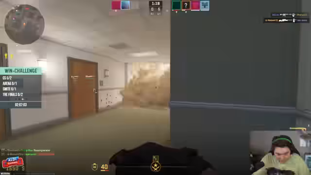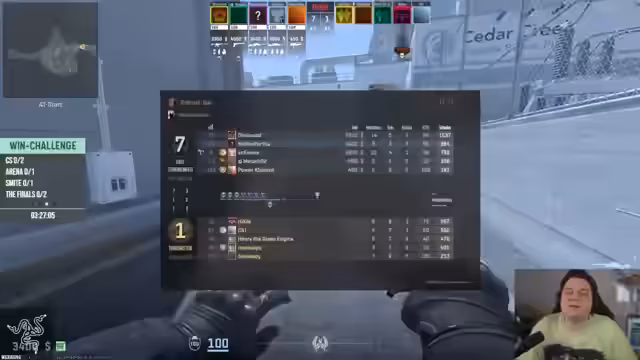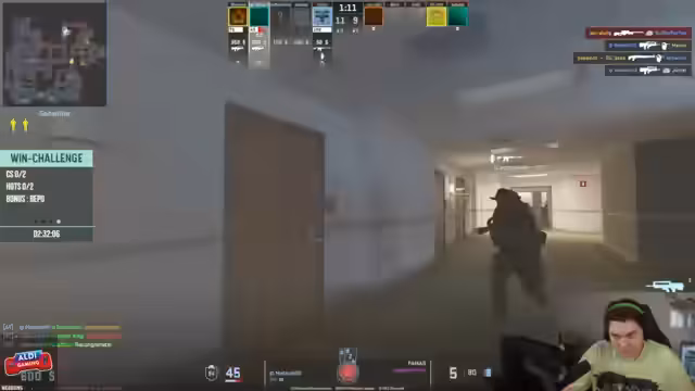 07:55:43Der Stream beginnt mit dem Start der Winchallenge. Ein Teilnehmer fordert den Streamer auf, einen Replay zu schauen, um ihn zu 'trash-talken'. Die Spieler verlieren sofort den ersten Rundenstart und versuchen, sich zu beruhigen. Danach bricht der Stream kurz zusammen, kann aber schnell wiederhergestellt werden. Anschließend wird das Problem angesprochen, dass keiner der Spieler die aktuelle Karte aus Rainbow Six kennt, was das Spiel erschwert.