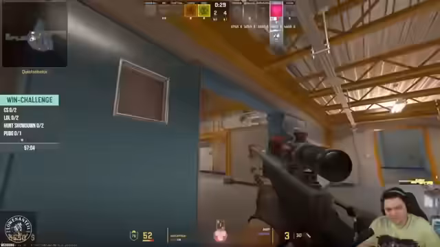 02:16:20Die Teilnehmer starten nun in den eigentlichen Win-Challenge-Modus, der auf der Map Office stattfindet. Sie werden von den Zuschauern aktiv ermutigt, keine Runde zu verlieren, und man diskutiert das Risikoverhalten des Glücksspiels beim Öffnen von Kisten. Dabei wird auch die Frage nach der "besten Kiste" aufgeworfen, von der jedoch abgeraten wird, diese im Stream zu bewerben. Die Chat-Interaktion spielt eine große Rolle, da sie die Spieler ermutigen, eine "Aktivitätsfalle" zu legen, um die Zuschauer zu beteiligen.