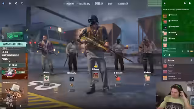 00:14:18Die Teilnehmer gehen realistisch die Spieleliste durch: Counter-Strike 2, League of Legends und Hunt Showdown. PUBG wird als zeitaufwendig eingeschätzt. Freddy wird für seine Herangehensweise kritisiert. Die Winrate in League wird als hoch eingeschätzt. Die Teilnehmer einigen sich auf eine Liste, wobei Finals gestrichen und Repo als Bonus hinzugefügt wird. Die Liste wird als abgesegnet betrachtet. Als Bestrafung für das Nicht-Erreichen der 12-Stunden-Challenge wird das Aufhören zu streamen festgelegt. Der Download von Hunt dauert lange. Es wird beschlossen, mit CS anzufangen. Elektro wird in den Call hinzugefügt und kann auch bei Rainbow mitmachen. DadoCard wird für sein Hintergrundbild gehänselt. Es wird über Steam-Account-Level und Spielzeiten in verschiedenen Spielen diskutiert. Karma wird eingeladen, dem Spiel beizutreten, nachdem er von einem Hacker aus der Freundesliste gelöscht wurde. Es wird über Dota-Items und gehackte Accounts gesprochen. Feldfrosch wird als potenzieller Mitspieler erwähnt. Die Teilnehmer diskutieren über Profilbilder und Steam-Freundschaftsanfragen. Die Liste wird als zu kurz empfunden und soll erweitert werden. Die Challenge soll 12 Stunden dauern. Es wird über die Winch-Challenge-Milch diskutiert. Die Teilnehmer einigen sich darauf, mit CS zu starten.
