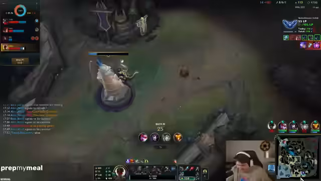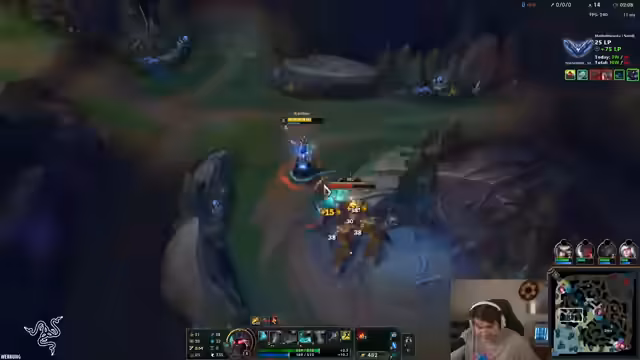 01:51:18Ein neues Match beginnt in der Diamond 4 Liga mit Master GrandMMR. Der Streamer gibt an, den ganzen Tag außerhalb von WoW aktiv gewesen zu sein und stellt fest, wie viel Lebenskraft das Spiel ihm früher genommen hat. Er muss sich erst wieder in den Jungle-Pfad einfinden und entscheidet sich fälschlicherweise für die Botlane, während sich alle Lanes heftige Kämpfe liefern. Er stellt fest, dass seine Mitspieler in High-Lore-Spielen eine enorme Bedeutung haben und eine kleine Unachtsamkeit das Spiel kippen lassen kann.