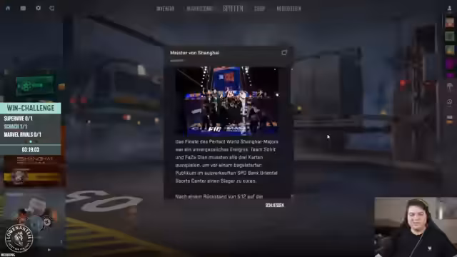 06:15:31Nachdem CS2 beendet ist, wechselt der Streamer zu PUBG, um einen Variety Games-Abstand zu schaffen. Der Fokus liegt auf dem Ballistik-Modus, der als neuerer Technik-Shooter gilt. Nach den ersten Runden stellt der Streamer fest, dass die Gegner in ranked Lobbies für ihn als erfahrener Spieler verhältnismäßig schwach sind. Der Fokus verlagert sich auf das gemeinsame Spielen, aber technische Probleme und die kurze Spieldauer der Runden führen zu einer gewissen Unzufriedenheit.