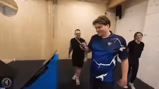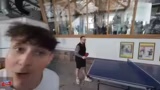 00:00:00Der Stream startet mit einer dynamischen Aufwärmphase, die durch ein ausgelassenes Tischtennispiel eingeleitet wird. Dabei werden verschiedene Matchpunkte und ein sportlicher Wettkampf zwischen den Teilnehmern simuliert, der den Übergang zum eigentlichen Parcours-Training bildet. Streamer noway4u_sir betont, dass dies nur das Aufwärmprogramm sei und der eigentliche Ninja Warrior Parcours nun folgt.