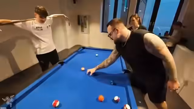 01:24:27Als Abwechslung wird eine Billardpartie gespielt, die sich schnell zu einem wettbewerbsintensiven Duell entwickelt. Dabei wird um einen Maki-Belohnung gespielt, die der Verlierer essen muss. Währenddessen wird auch der Parcours weiter trainiert, um eine ausgewogene Balance zwischen Pausen und harter Arbeit zu schaffen. Der Spaß steht im Vordergrund.