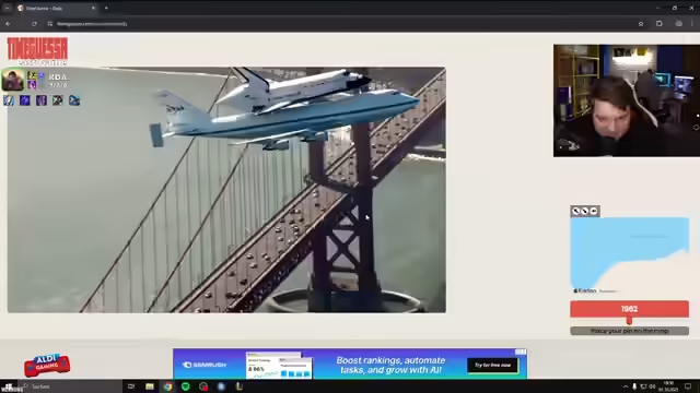 05:11:11Der Streamer fragt nach dem besten Pick gegen Garen und erwägt Timo oder Cassio, entscheidet sich aber für Timo. Es wird kurz über einen Gruß im Chat diskutiert. Anschließend wird das Spiel von Bröki weiter beobachtet. Nach dem Spiel wird die Frage aufgeworfen, ob 'Hades' ein gutes Spiel für die Wartezeit in der Queue ist. Stattdessen wird 'Time-Guessler' vorgeschlagen, ein Spiel, bei dem man historische Bilder erraten muss. Der Streamer versucht sich an 'Time-Guessler', scheitert aber kläglich an der zeitlichen Einordnung eines Bildes der Golden Gate Bridge. Er vermutet das Bild in den 90ern, es stammt aber aus dem Jahr 2012. Im weiteren Verlauf des Spiels werden weitere Bilder erraten, wobei der Streamer oft daneben liegt.