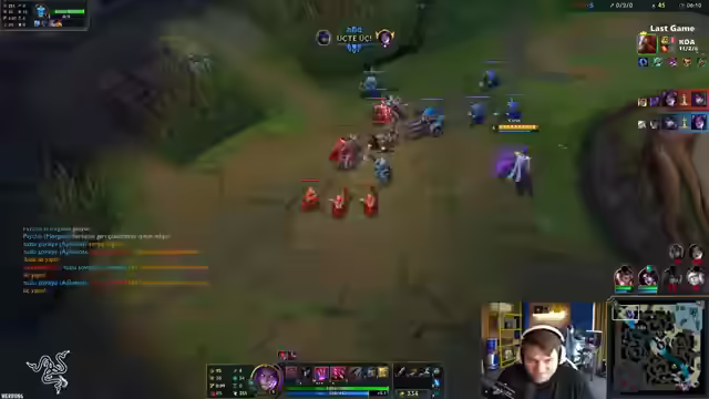 06:27:10Der Streamer wundert sich, wie er den Trash mit der Q nicht getroffen hat und vermutet eine Disconnection. Er glaubt, dass die Gegner im Try einen Mord haben müssten, da sie dafür sofort CP'd hatten. Der Streamer stirbt und kritisiert, dass alle im Jungle gammeln, anstatt nach unten zu laufen und die Gegner zu töten. Trotz aller Ults haben die Gegner währenddessen den Inhaber genommen. Die Situation riecht nach scalable für die Gegner. Der Streamer fragt sich, wie er etwas gemacht hat und lobt einen guten Fight für sein Team. Er gibt zu, dass das Spiel nicht so spektakulär war und sie fast zurückgekommen wären. Der Streamer glaubt, dass sie irgendwann outscaled hätten und dass das Spiel besser gewesen wäre, wenn der Support besser gewesen wäre.