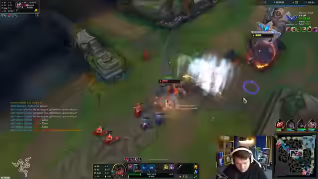06:23:30Es wird über eine Situation oben diskutiert, in der der Streamer nicht in Yasuo reinrennen will. Stattdessen wollte Yasuo dem Streamer eine Laterne geben, damit er zu ihm kommt. Es wird überlegt, ob der Gegner einen Helvet macht. Der Streamer kommentiert die überraschenden Moves des Gegners und die Anwesenheit der Syndra. Trotz einiger Verluste, darunter der Thresh, wird die Leistung des Kessant gelobt. Das Team kann gegen die Angreifer nichts ausrichten, da sie im Nachteil sind. Der Streamer kommentiert den Spielstand und die Items der Gegner. Die kleinen Ferkel warten auf ihre Chance, und es wird überlegt, warum die Gegner Bottlen TP'n. Der Streamer würde gerne fighten, versteht aber nicht, warum er der Einzige ist.
